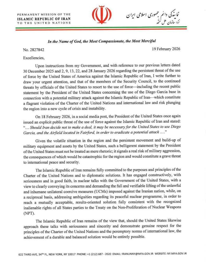 Iran Sends Formal Warning to UN Secretary-General Over Potential Attack The Government of Iran has sent an official letter to the Secretary-General of the United Nations, António Guterres, warning of serious global consequences