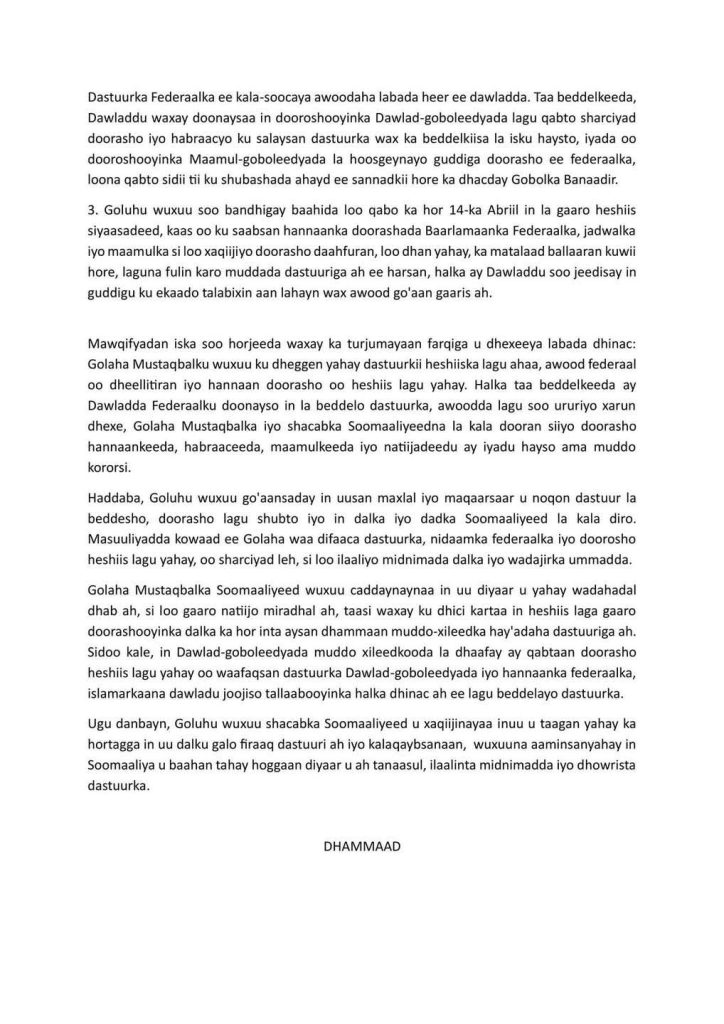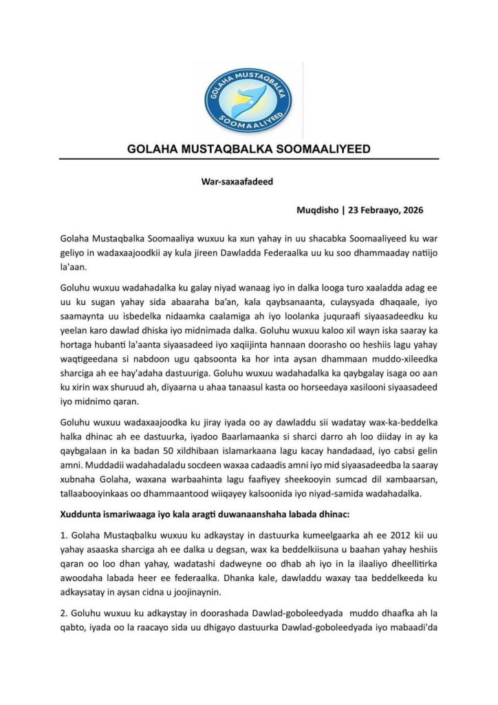 -The Somali Future Council announced that its recent meetings with President Hassan Sheikh ended without any agreement, following two consecutive discussions held between the opposition bloc and the federal leadership.